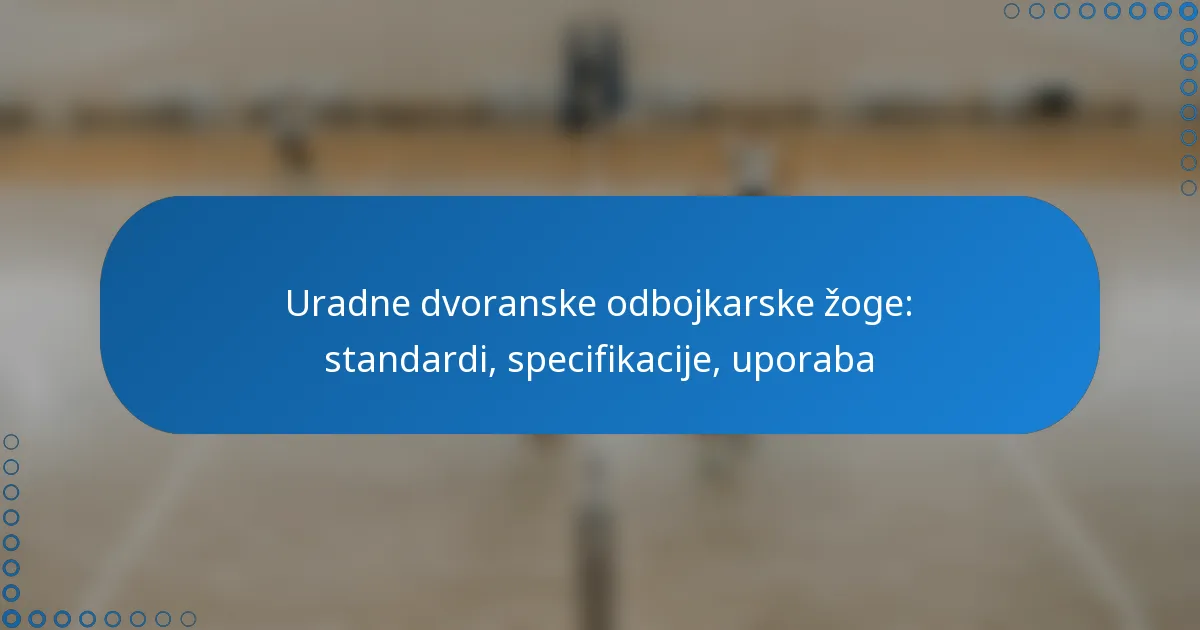 Uradne dvoranske odbojke so izdelane v skladu z strogimi standardi, ki jih določajo upravljavske organizacije, kar zagotavlja enotnost v igri. Te specifikacije zajemajo velikost, težo, materiale in metode izdelave, kar vse pomembno vpliva na zmogljivost žoge med tekmami. Izbira prave odbojke, prilagojene vašemu nivoju znanja in slogu igre, lahko močno izboljša tako vašo zmogljivost kot tudi užitek v igri.
