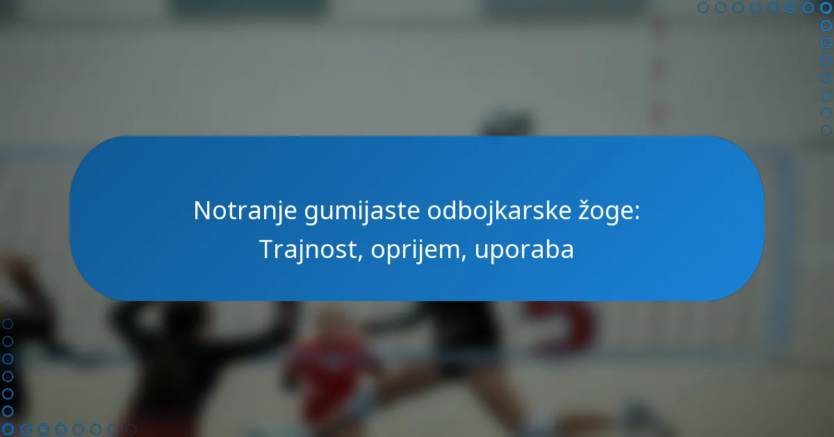 Notranje gumijaste odbojke so zasnovane za trajnost in zmogljivost, kar jih dela idealne za različne igralne površine. Njihova materialna sestava in oprijem pomembno vplivata na nadzor igralca, kar omogoča natančne gibe med igro. Z razumevanjem dejavnikov, ki vplivajo na njihovo dolgoživost in vzdrževanje, lahko igralci izboljšajo svoje splošno izkušnjo na igrišču.